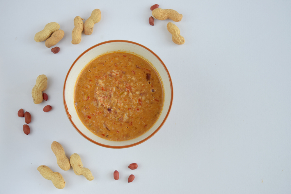 2. Blender atau ulek kacang goreng bersama bawang putih, cabai, gula merah, dan garam hingga teksturnya halus.